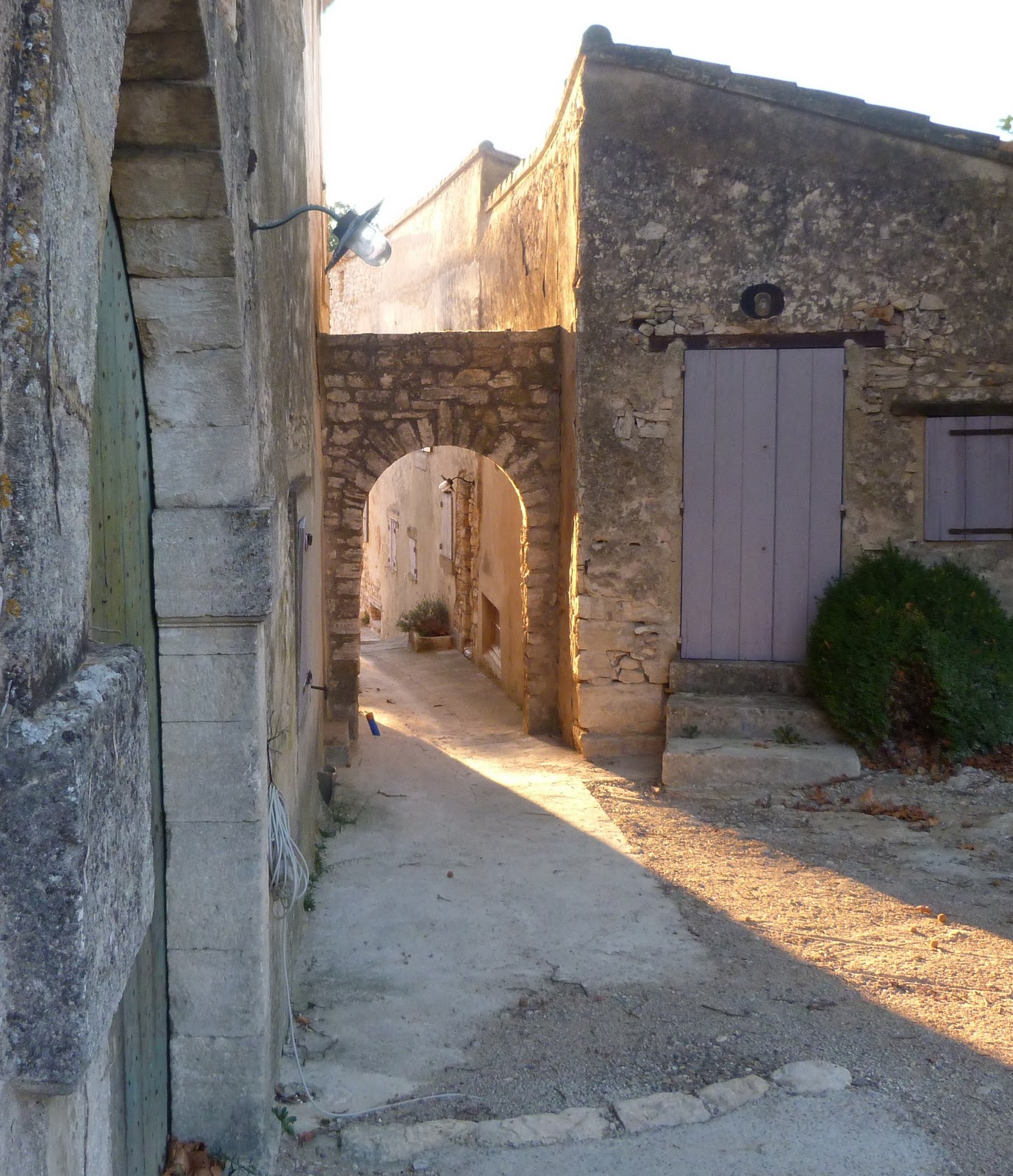 The vine canopy is starting to drop russet leaves over the summer dining table. Clouds hang in the valley before the sun warms the morning. Autumn is definitely in the air, even if it’s still summer at midday in Provence .